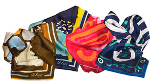 These whimsical but chic scarves are 55cm square, 100 lightweight silk twill, and made in a sustainable mill in the north of Italy.